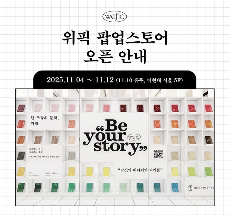 그중 '위픽Wefic'이라는 시리즈로 팀원들과 함께 매주 한 권의 책을 100권까지 내는 어마어마한 프로젝트가 시작된 거죠. 물량 공세로 가자, 미쳤다 소리 나오게 해보자 하는 후발주자의 기세로요. 그렇게 2023년 3월 첫 번째 위픽 구병모 작가님의 <파쇄>를 시작으로, 2025년 10월 22일 이미상 작가님의 <셀붕이의 도>로 총 100권을 채웠습니다. 어떤 소설이 제일 잘 나갔는지 궁금하죠? 베스트 3는 구병모 <파쇄>, 최진영 <오로라>, 조예은 <만조를 기다리며>라고요.